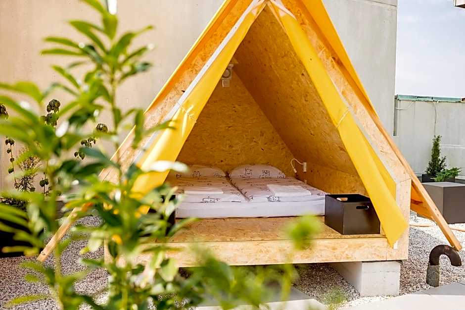 After a day of exploring the city, guests can unwind on the sun deck or sip a refreshing drink at the hotel's cozy bar. The vibrant energy of the city is reflected in the hotel's design and atmosphere, making it the perfect place to relax and soak in the local culture. Whether you prefer a night in a tent or a cabin, each room promises a comfortable and cozy retreat from the bustling streets of Ljubljana.